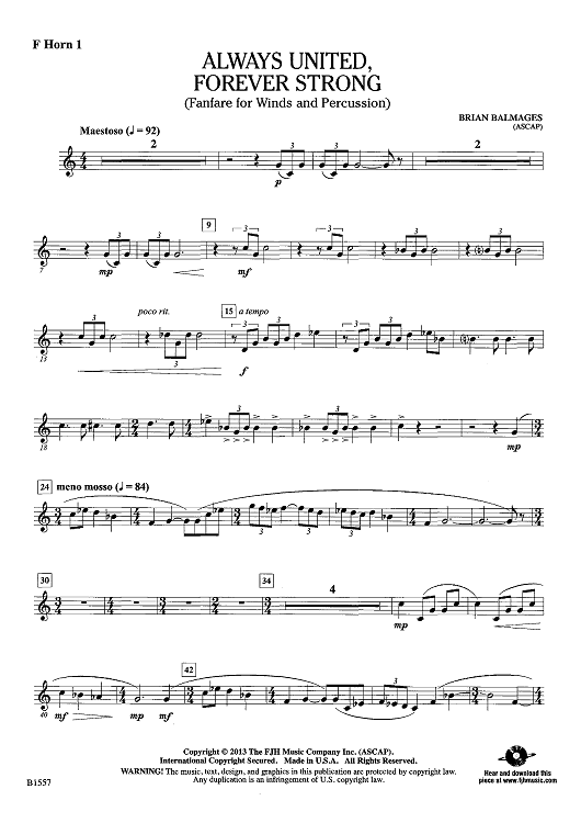 Digital Sheet Music for Always United, Forever Strong - F Horn 1 by Brian Balmages scored for Concert Band; id:440315