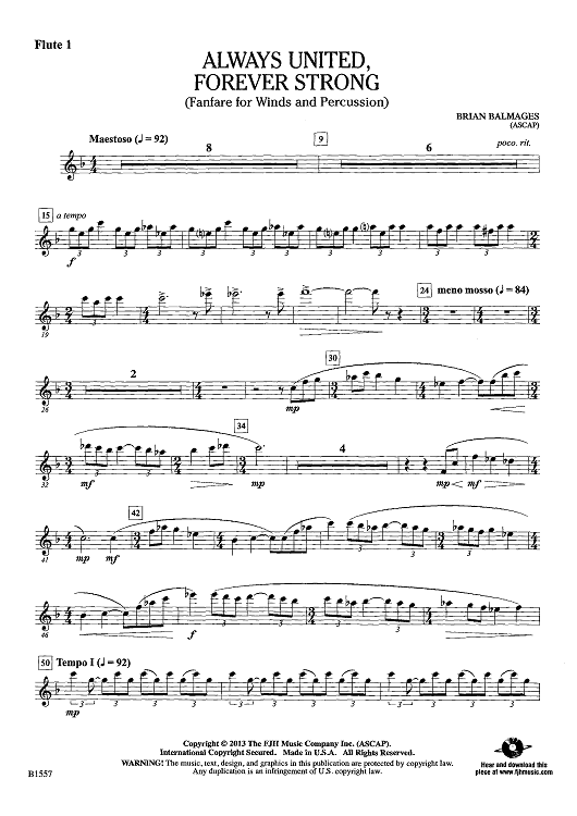 Digital Sheet Music for Always United, Forever Strong - Flute 1 by Brian Balmages scored for Concert Band; id:440299