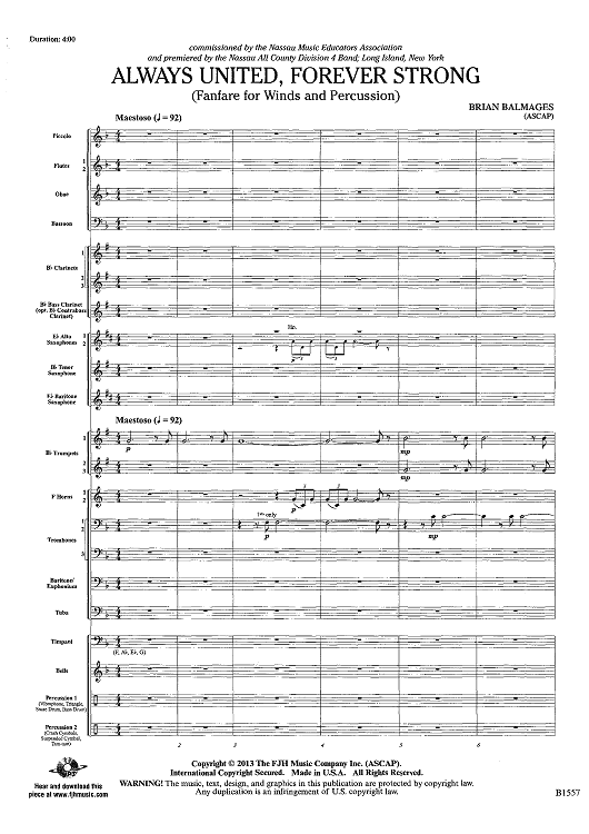 Digital Sheet Music for Always United, Forever Strong - Score by Brian Balmages scored for Concert Band; id:440296