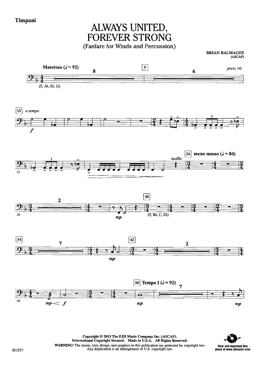 Digital Sheet Music for Always United, Forever Strong - Timpani by Brian Balmages scored for Concert Band; id:440323