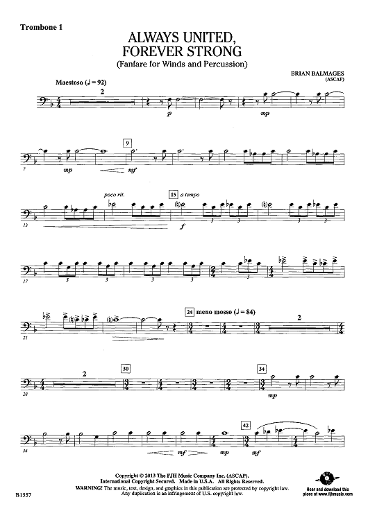 Digital Sheet Music for Always United, Forever Strong - Trombone 1 by Brian Balmages scored for Concert Band; id:440317