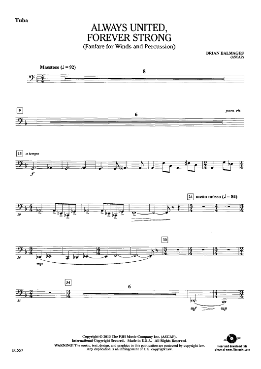 Digital Sheet Music for Always United, Forever Strong - Tuba by Brian Balmages scored for Concert Band; id:440322