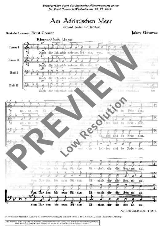 Digital Sheet Music for Am Adriatischen Meer - Choral Score by Jakov Gotovac scored for Men's Choir (ttbb); id:471583