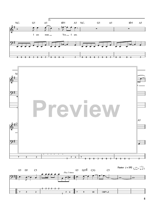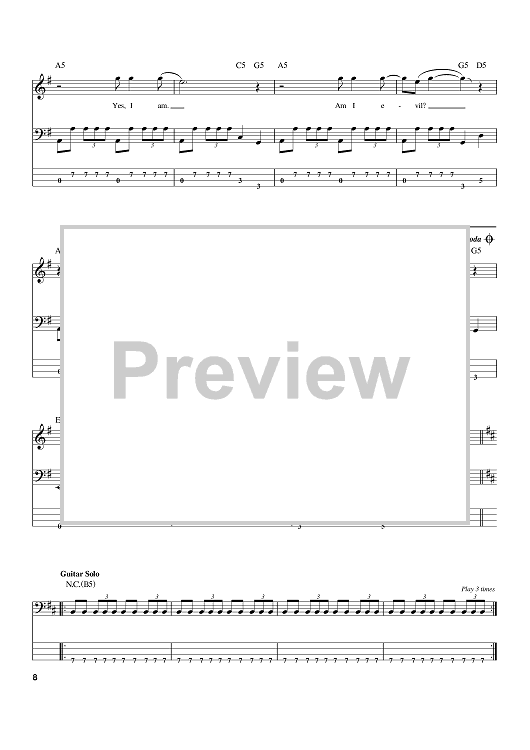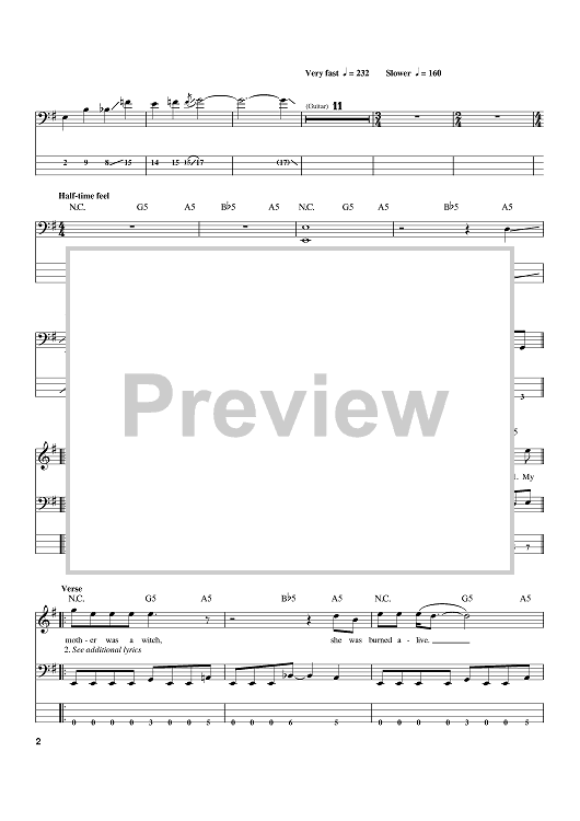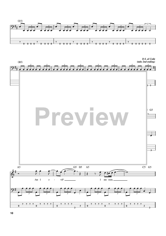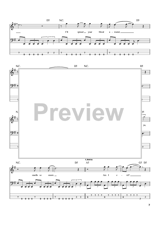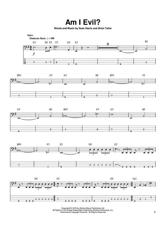 Digital Sheet Music for Am I Evil? by Metallica, Sean Harris, Brian Tatler scored for Bass Tab; id:388553
