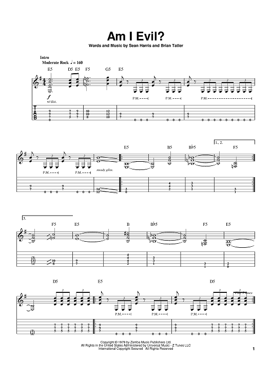 Digital Sheet Music for Am I Evil? by Metallica, Sean Harris, Brian Tatler scored for Guitar Tab; id:402586