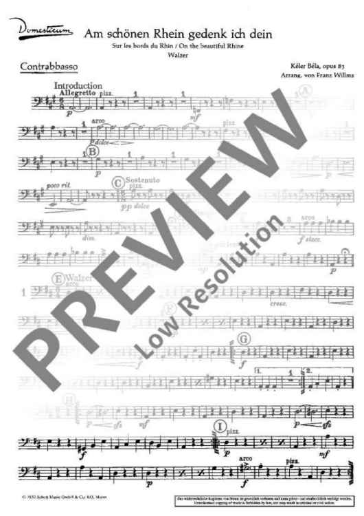 Digital Sheet Music for Am schönen Rhein gedenk ich dein - Double Bass by Béla Kéler scored for Salon Orchestra; id:488209