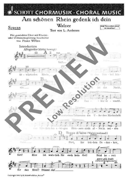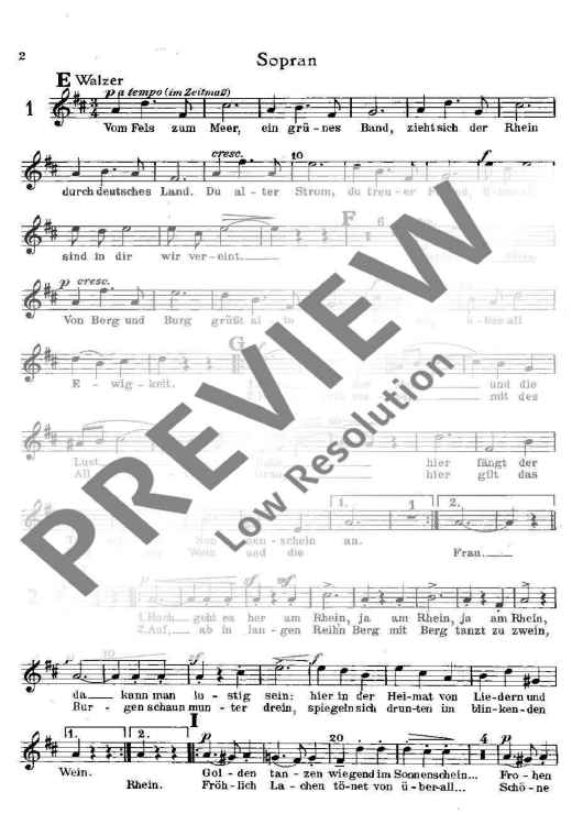 Digital Sheet Music for Am schönen Rhein gedenk ich dein - Soprano by Béla Kéler, Franz Willms scored for Mixed Choir And Piano Or Salon Orchestra; id:478904