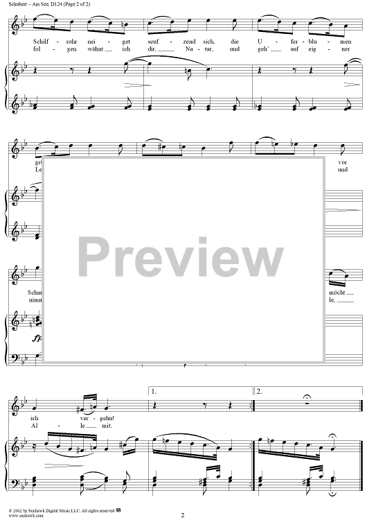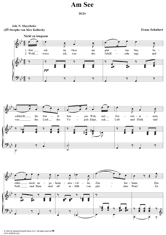 Digital Sheet Music for Am See, D124 by Franz Schubert scored for Voice/Piano; id:256401