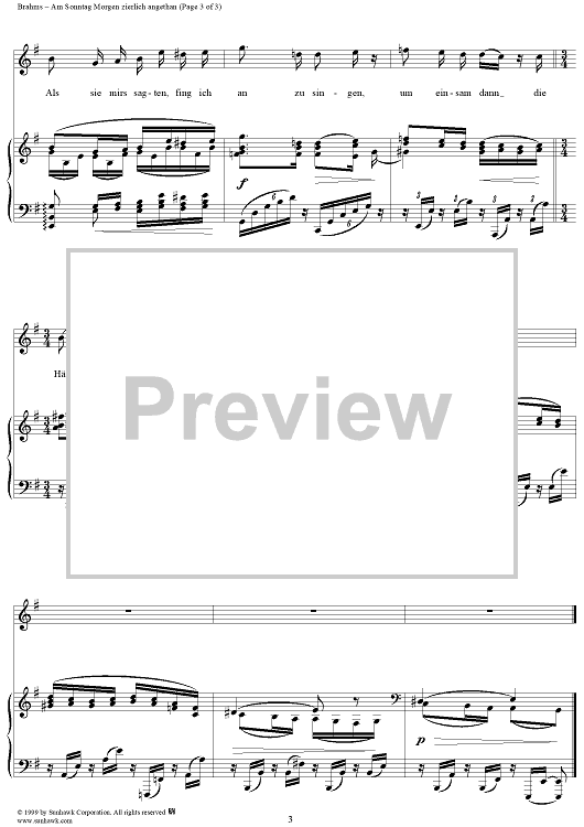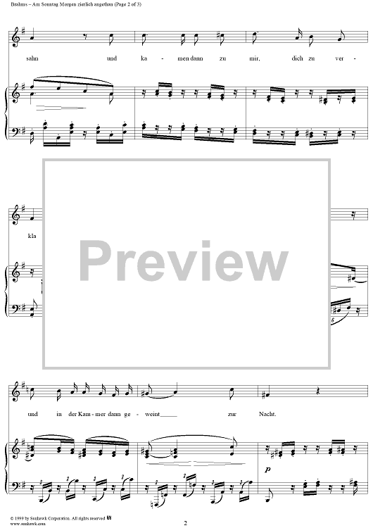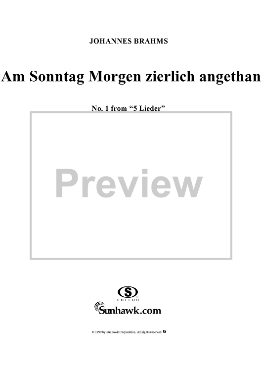 Digital Sheet Music for Am Sonntag Morgen zierlich angethan - No. 1 from "5 Lieder" - Op. 49 by Johannes Brahms scored for Voice/Piano; id:274973