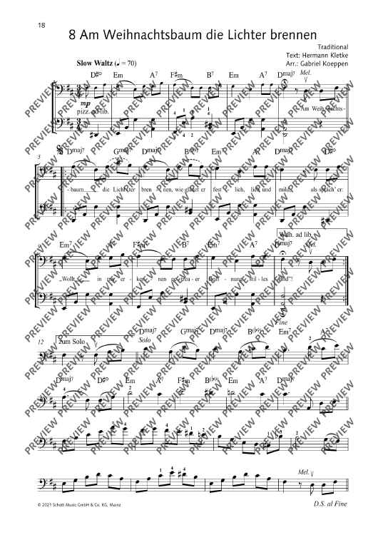 Digital Sheet Music for Am Weihnachtsbaum die Lichter brennen by Gabriel Koeppen scored for 1-2 Cellos (piano Ad Libitum); id:496560