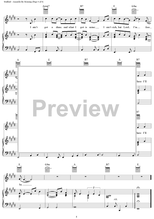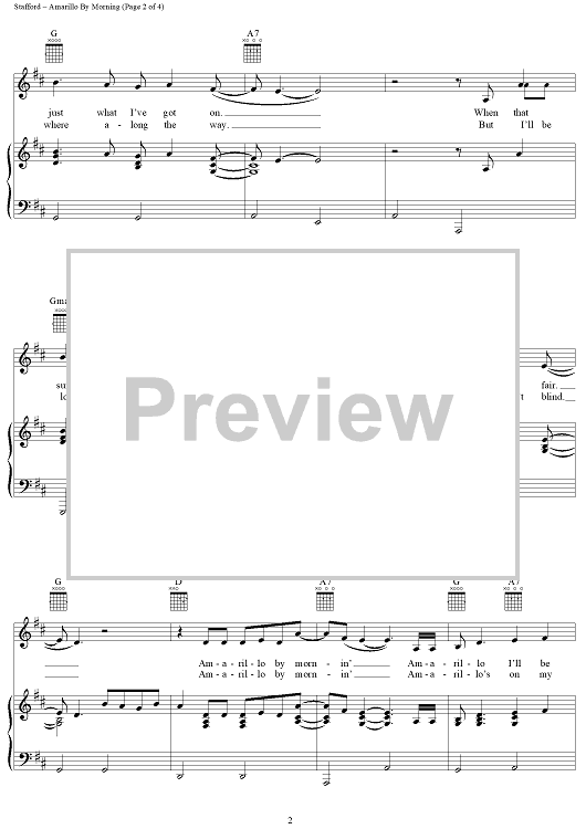 Digital Sheet Music for Amarillo By Morning by George Strait, Terry Stafford, Paul Fraser scored for Piano/Vocal/Chords; id:124107