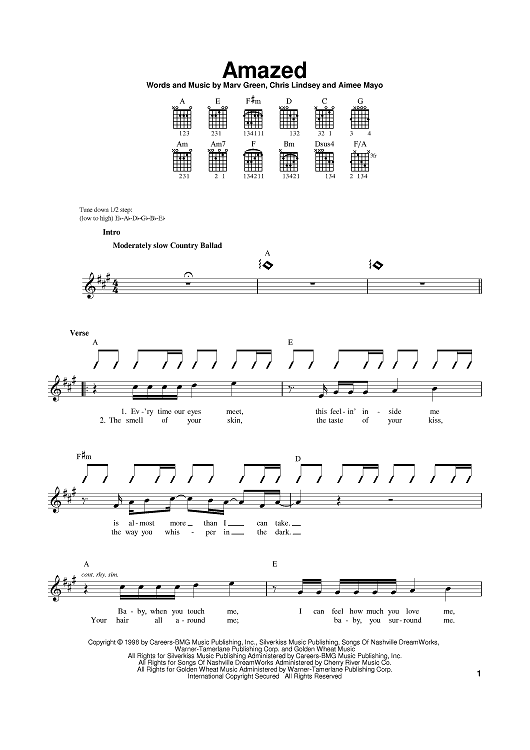 Digital Sheet Music for Amazed by Lonestar, Aimee Mayo, Marv Green, Chris Lindsey scored for Easy Guitar; id:370355