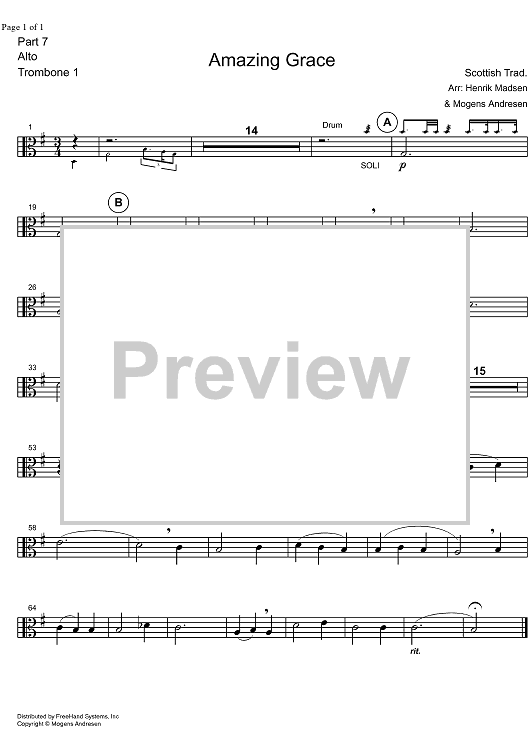Digital Sheet Music for Amazing Grace - Alto Trombone by Mogens Andresen, Traditional scored for Brass Ensemble; id:324815