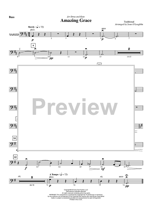 Digital Sheet Music for Amazing Grace - Bass by Traditional, Sean O'Loughlin scored for String Orchestra; id:449980