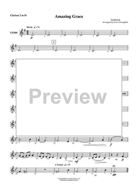 Digital Sheet Music for Amazing Grace - Clarinet 2 in Bb by Traditional, Sean O'Loughlin scored for Concert Band; id:420836