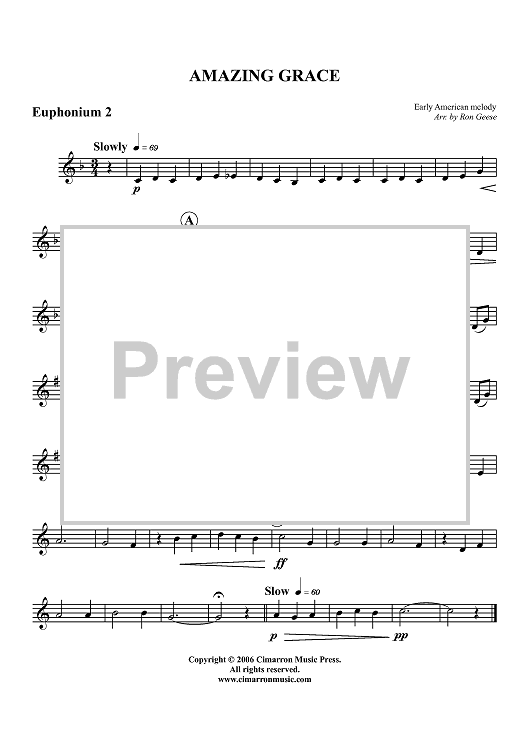 Digital Sheet Music for Amazing Grace - Euphonium 2 BC/TC by Ron Geese, Early American Melody scored for Tuba Quartet; id:360317