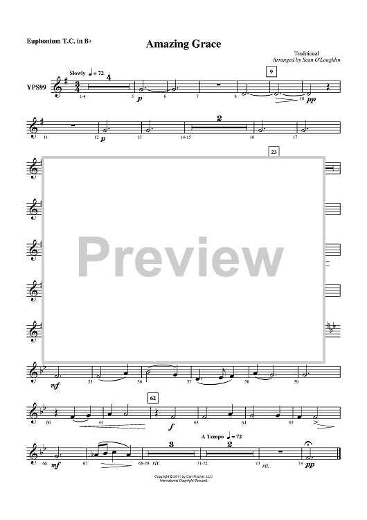 Digital Sheet Music for Amazing Grace - Euphonium TC by Traditional, Sean O'Loughlin scored for Concert Band; id:420846
