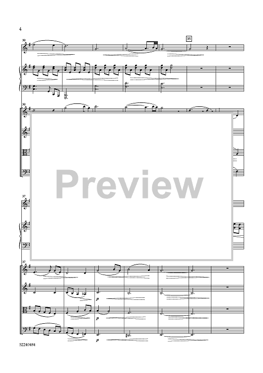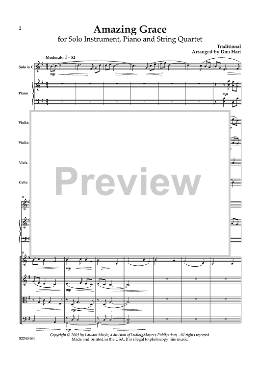 Digital Sheet Music for Amazing Grace - for Solo Instrument, Piano and String Quartet - Score by , Traditional, Don Hart scored for String Quartet; id:458909