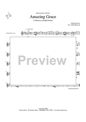 Digital Sheet Music for Amazing Grace - Horn 1 in F by John Newton, John Beyrent scored for Brass Ensemble; id:428239