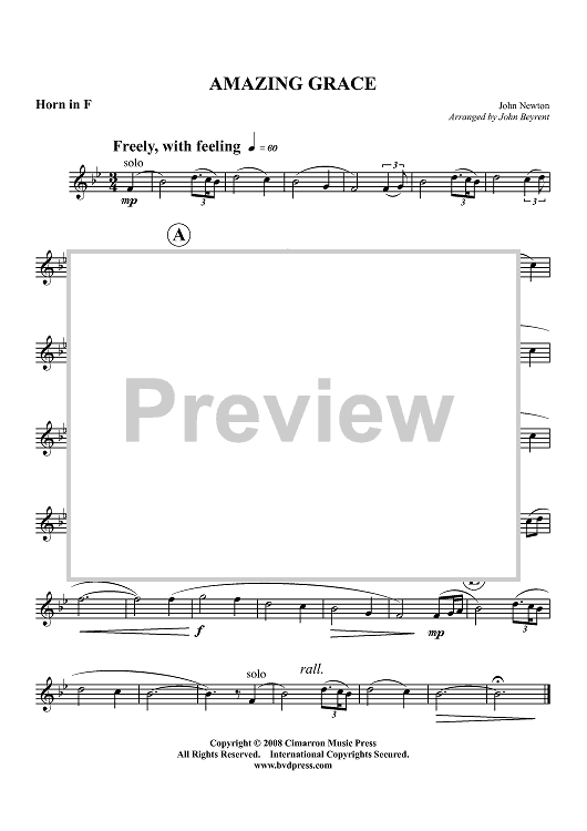 "Amazing Grace - Horn in F" Sheet Music by John Newton