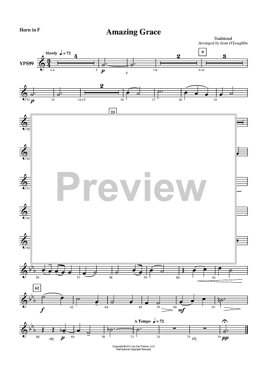 Digital Sheet Music for Amazing Grace - Horn in F by Traditional, Sean O'Loughlin scored for Concert Band; id:420844