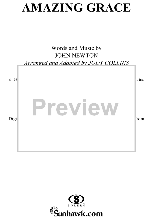Digital Sheet Music for Amazing Grace by Judy Collins, John Newton scored for Piano/Vocal/Chords; id:285931