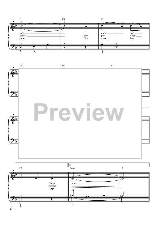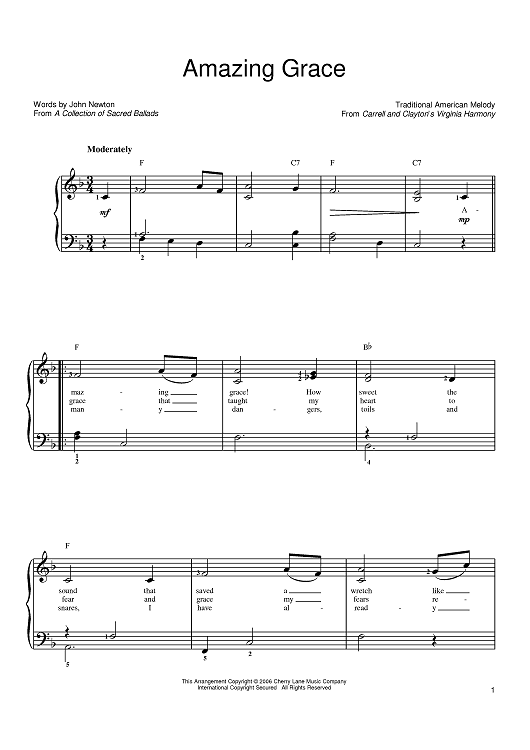 Digital Sheet Music for Amazing Grace by John Newton, Edwin O. Excell scored for Easy Piano; id:390145