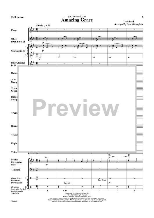 Digital Sheet Music for Amazing Grace by Traditional, Sean O'Loughlin scored for Concert Band; id:420832