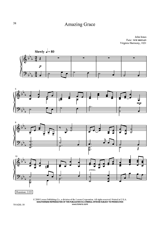 Digital Sheet Music for Amazing Grace by Virginia Harmony, John Innes scored for Piano Solo; id:434208