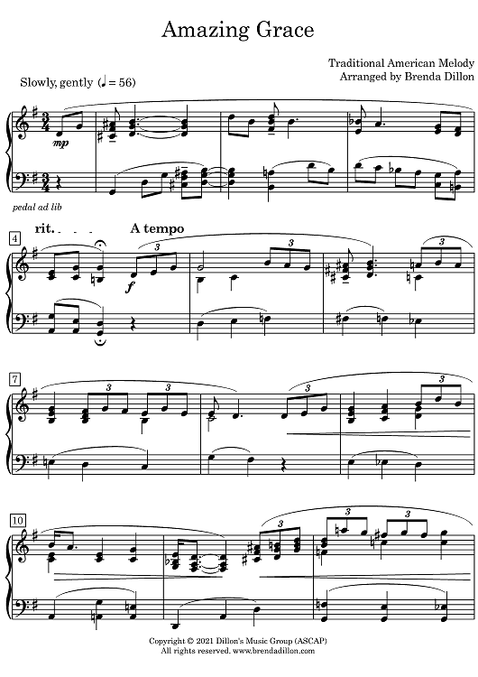 Digital Sheet Music for Amazing Grace by Traditional American Melody, Brenda Dillon scored for Piano; id:469386