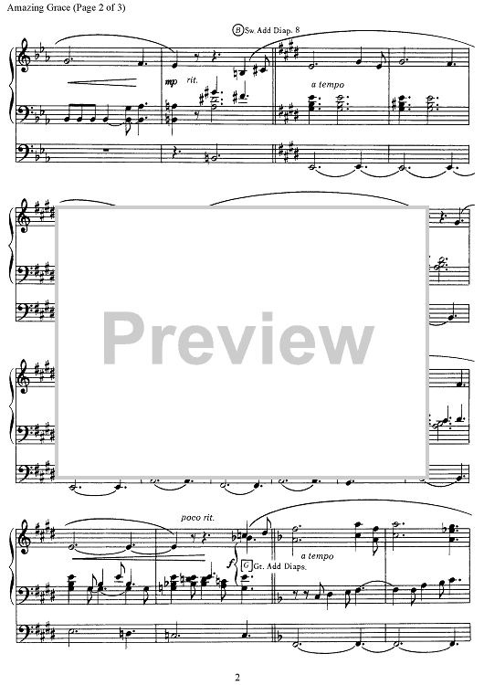 Digital Sheet Music for Amazing Grace by Robert J. Hughes scored for Organ Solo; id:501422