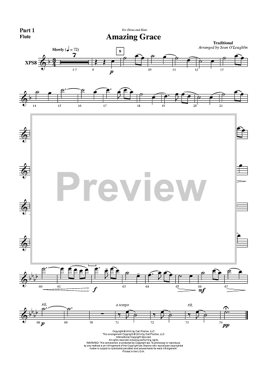 Digital Sheet Music for Amazing Grace - Part 1 Flute by Traditional, Sean O'Loughlin scored for Concert Band; id:452551