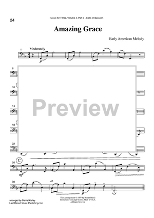Digital Sheet Music for Amazing Grace - Part 3 Cello or Bassoon by , Traditional American Melody, Daniel Kelley scored for Instrumental Trio; id:424091