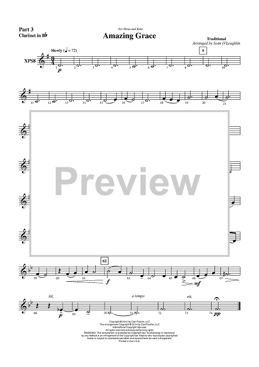 Digital Sheet Music for Amazing Grace - Part 3 Clarinet in Bb by Traditional, Sean O'Loughlin scored for Concert Band; id:452557