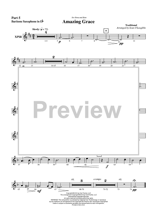 "Amazing Grace - Part 5 Baritone Sax" Sheet Music by Traditional