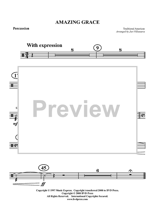 "Amazing Grace - Percussion" Sheet Music by Traditional American Melody