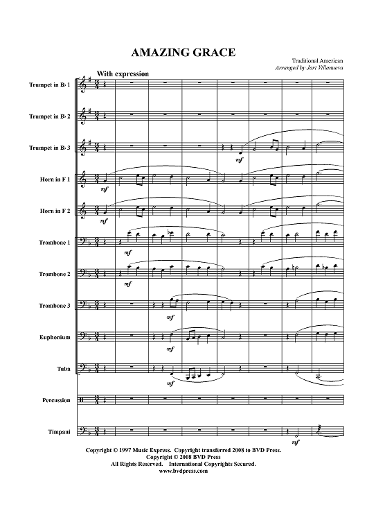 Digital Sheet Music for Amazing Grace - Score by , Traditional American Melody, Jari Villanueva scored for Brass Ensemble; id:411919