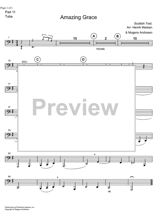 Digital Sheet Music for Amazing Grace - Tuba by Mogens Andresen, Traditional scored for Brass Ensemble; id:324819