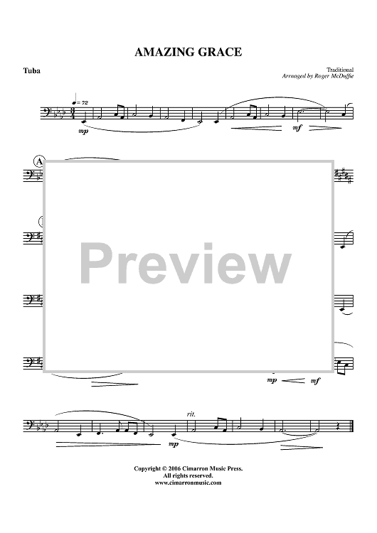 Digital Sheet Music for Amazing Grace - Tuba by Roger McDuffie, Traditional scored for Tuba/Piano; id:360187