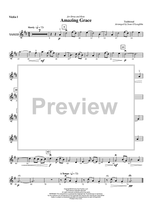 Digital Sheet Music for Amazing Grace - Violin 1 by Traditional, Sean O'Loughlin scored for String Orchestra; id:449975