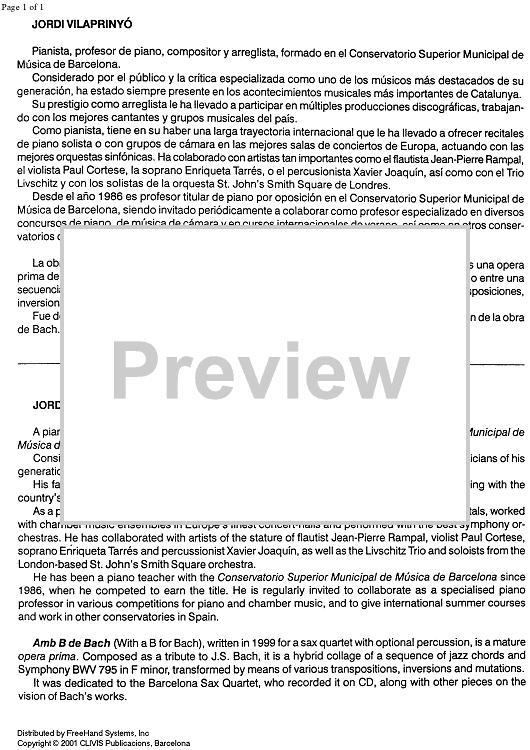 Digital Sheet Music for Amb B de Bach - Preface by , Jordi Vilaprinyo scored for Preface; id:348926