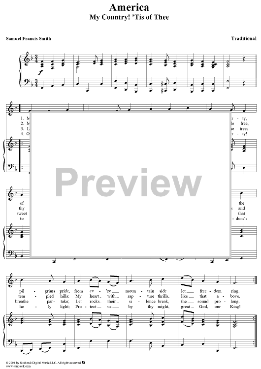 Digital Sheet Music for America (My Country! 'Tis of Thee) by Samuel Francis Smith, Traditional scored for Piano/Vocal; id:277432