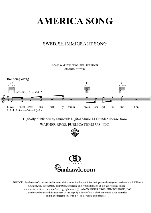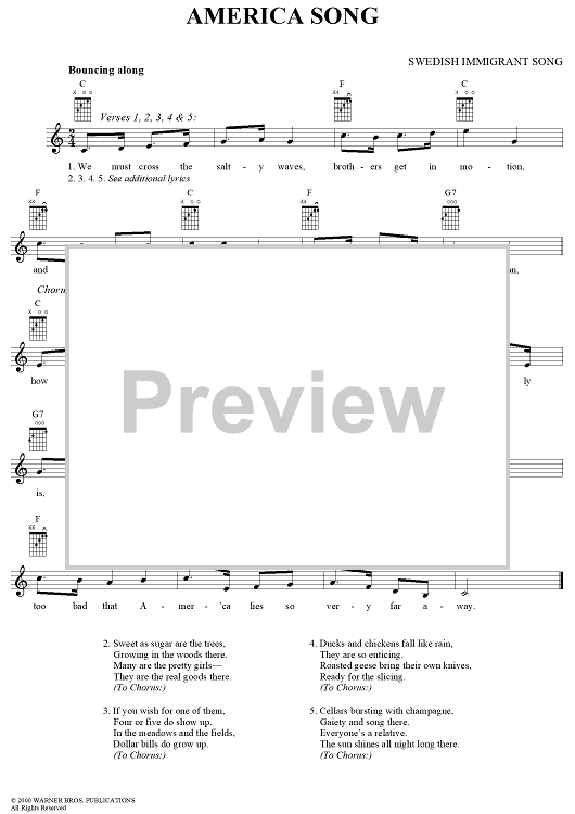 Digital Sheet Music for America Song by Traditional scored for Lead Sheet; id:292698