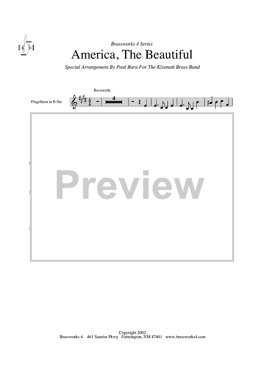 Digital Sheet Music for America, The Beautiful - Flugelhorn in Bb by Samuel A. Ward, Paul Bara scored for Brass Ensemble; id:428597