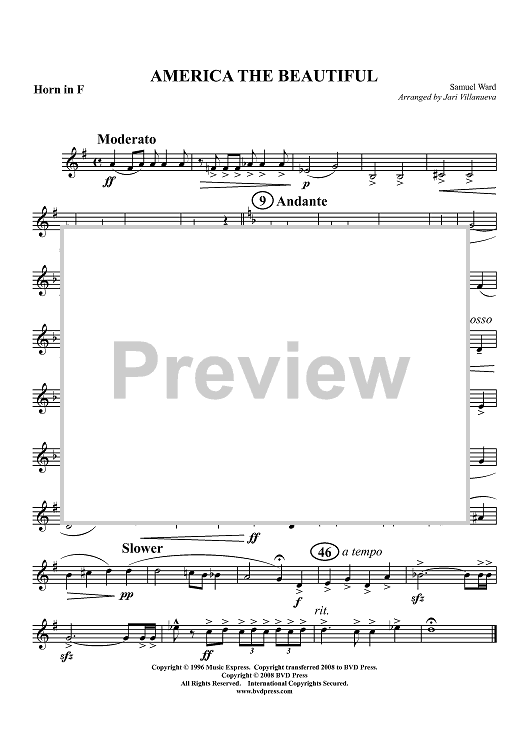Digital Sheet Music for America the Beautiful - Horn by Samuel A. Ward, Jari Villanueva scored for Brass Quintet; id:405081