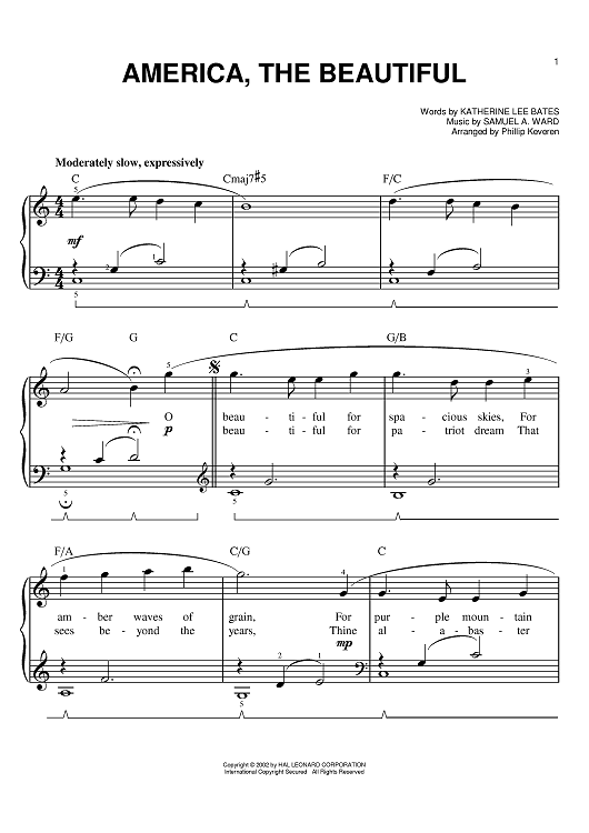 "America, The Beautiful" Sheet Music by Katherine Lee Bates