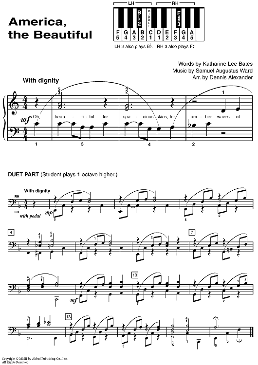 Digital Sheet Music for America, the Beautiful by Samuel A. Ward, Katherine Lee Bates, Dennis Alexander scored for Piano; id:503943