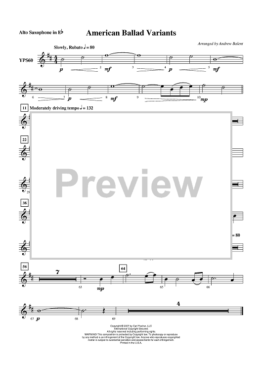 Digital Sheet Music for American Ballad Variants - Alto Sax by Andrew Balent scored for Concert Band; id:407696