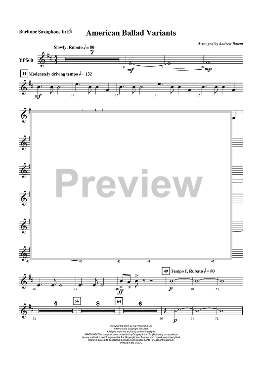 Digital Sheet Music for American Ballad Variants - Baritone Sax by Andrew Balent scored for Concert Band; id:407698