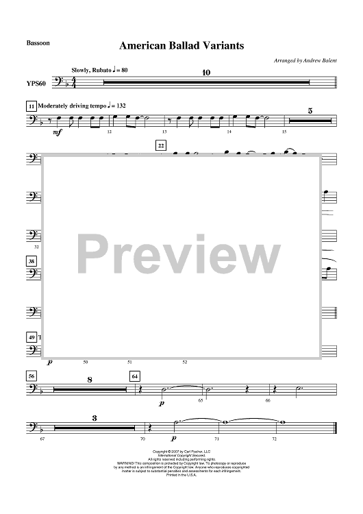 Digital Sheet Music for American Ballad Variants - Bassoon by Andrew Balent scored for Concert Band; id:407695